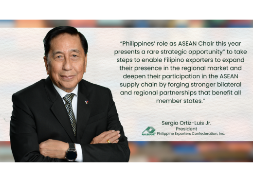 PHILEXPORT president Sergio R. Ortiz-Luis, Jr. in a speech at a business gathering in Makati said the “Philippines’ role as ASEAN Chair this year presents a rare strategic opportunity” to take steps to enable Filipino exporters to expand their presence in the regional market and deepen their participation in the ASEAN supply chain by forging stronger bilateral and regional partnerships that benefit all member states.